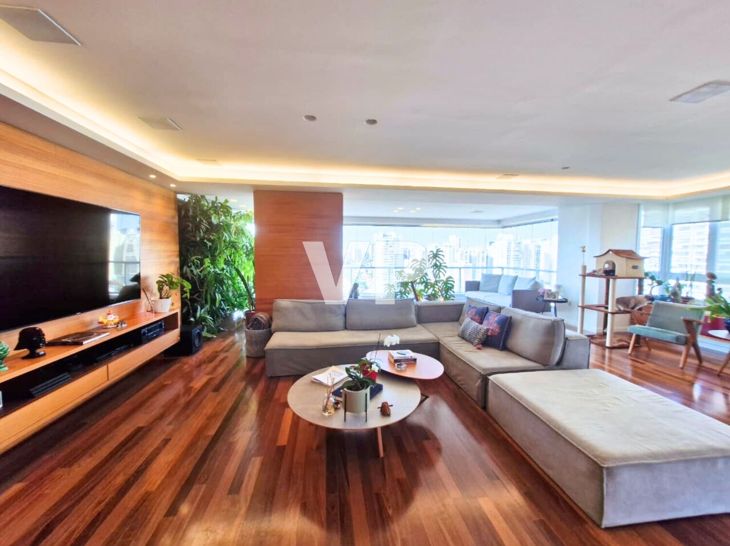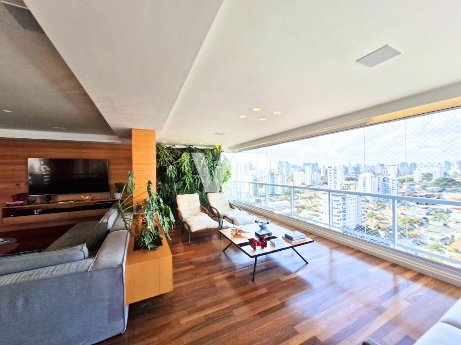 São 225 m² com ambientes amplos e sofisticados, três suítes, lavabo, cozinha integrada, varanda em L com fechamento parcial, além de depósito e quatro vagas de garagem. O apartamento recebe sol da manhã e oferece vista livre.