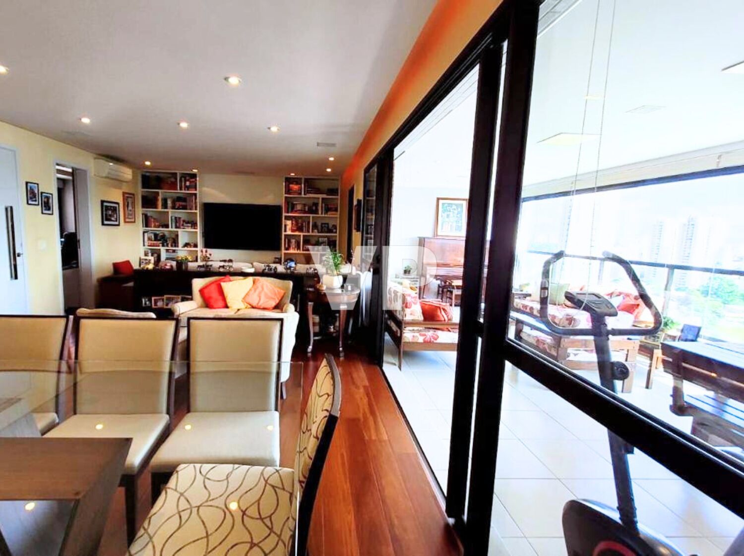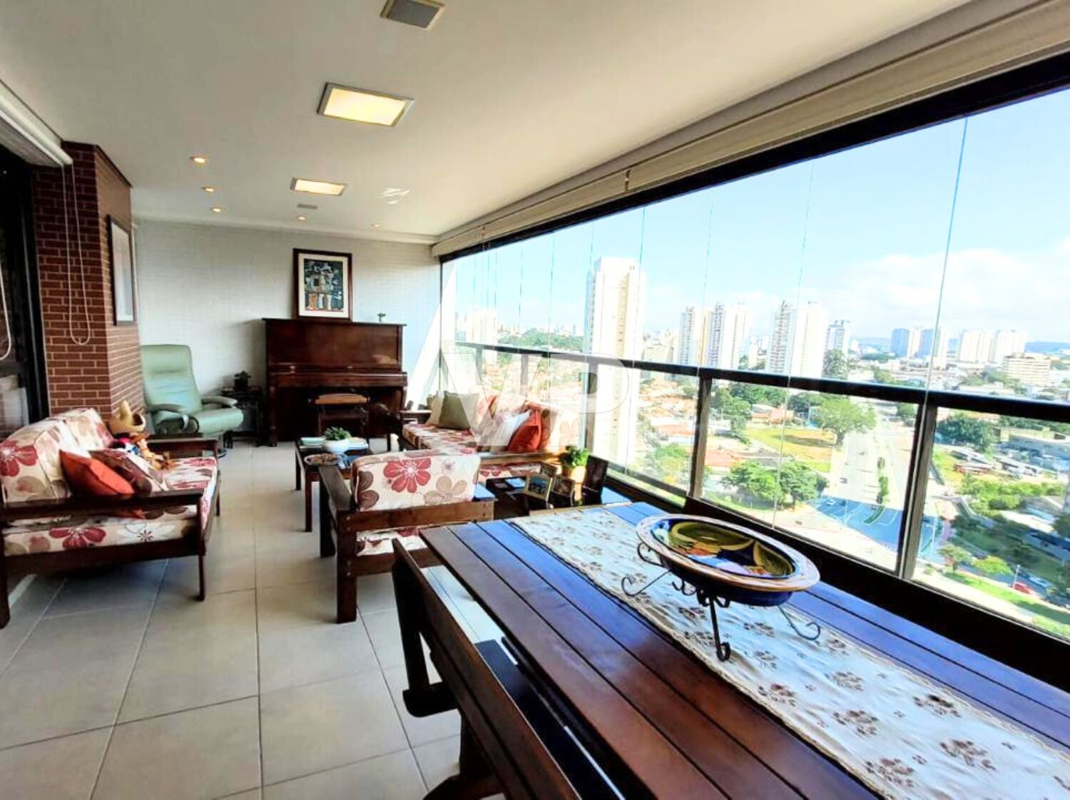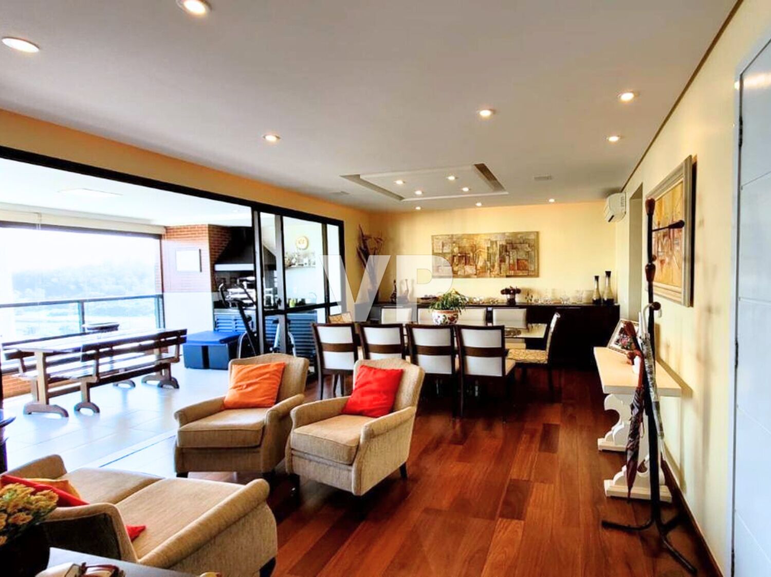 A varanda gourmet com churrasqueira e vista livre é um convite para receber amigos e desfrutar de momentos especiais. O imóvel ainda dispõe de quatro vagas de garagem e depósito privativo no subsolo com prateleiras.