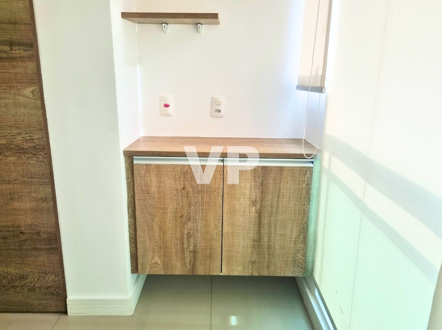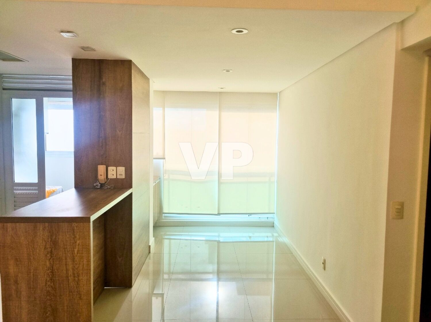 Com uma planta bem resolvida, o imóvel conta com um dormitório, banheiro e uma vaga de garagem livre e demarcada. A área social é integrada, com cozinha conectada à sala e à sacada, que oferece uma vista panorâmica e excelente iluminação natural.