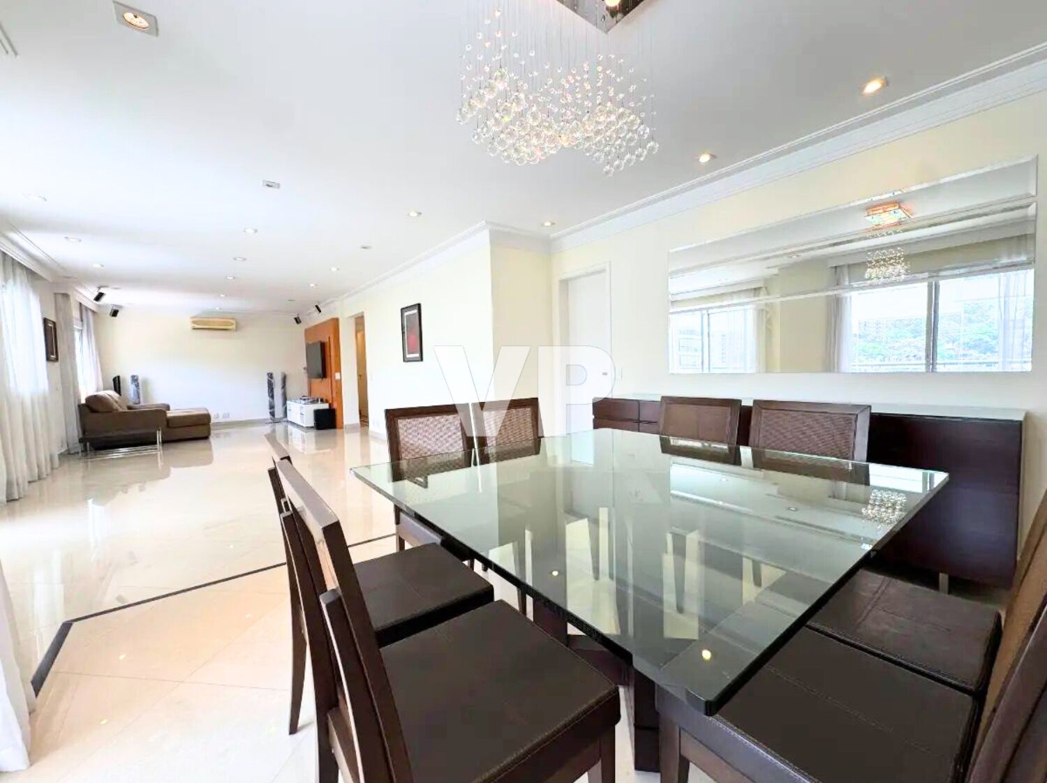Entre os diferenciais, o imóvel possui ar-condicionado na sala, na sala de jantar e em duas das suítes, além de janelas antirruído em uma delas e persianas elétricas na suíte master. As três suítes apresentam armários embutidos de alta qualidade, e o hall social privativo reforça a exclusividade e privacidade do apartamento. Há também lavabo para maior comodidade.